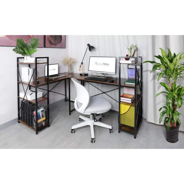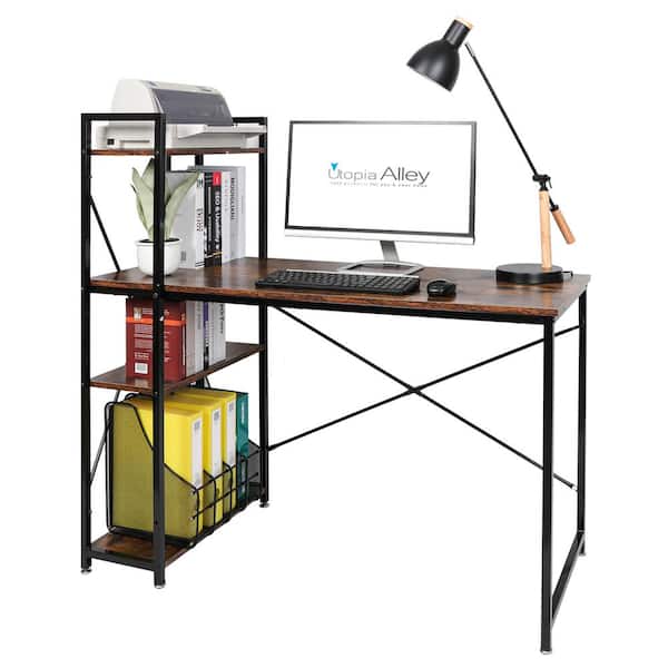 47 in. Rectangular Rustic Brown Computer Desk with Shelves