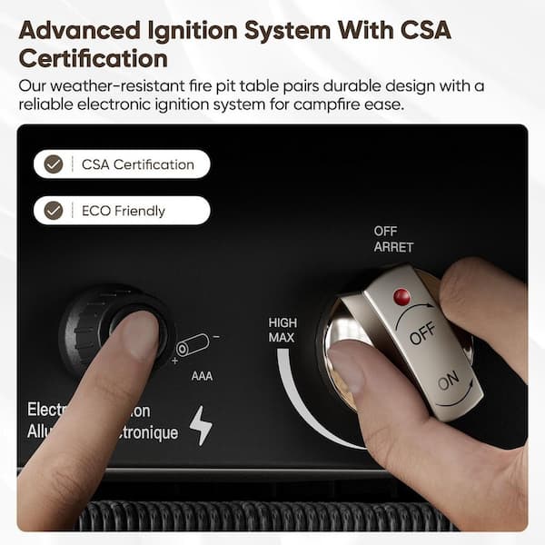 • CSA-tested fire pit table ensures safety and flame adjustment