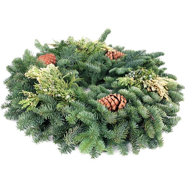 20 in. Live Fresh Cut Pacific Northwest Mixed Christmas Wreath with Cones