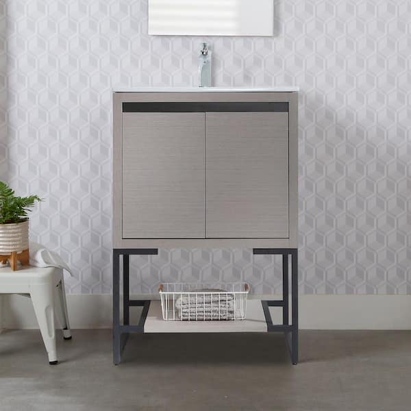 24 in. W x 35.04 in. H Free-Standing Bath Vanity in Gray with Vanity Top in White with White Basin