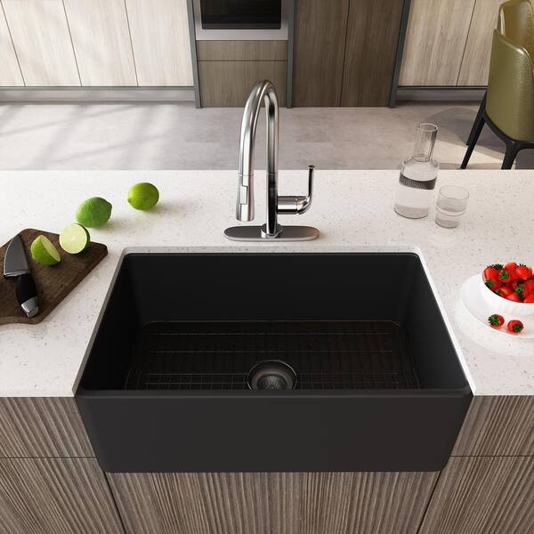 33 in. Undermount Farmhouse Single Bowl Black Fine Fireclay Workstation Kitchen Sink with Faucet and Accessories