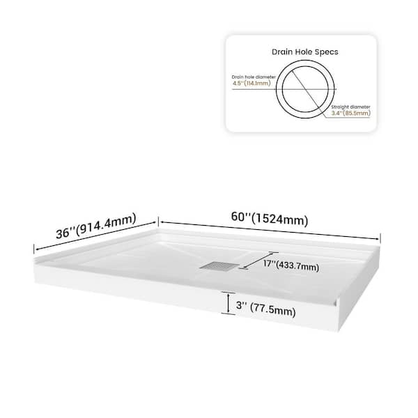 48 in. L x 36 in. W Single Threshold Alcove Shower Pan Base with Center Drain in White