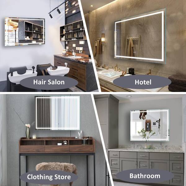 48 in. W x 36 in. H Rectangular Frameless Anti-Fog Dimmable LED Light Wall-Mounted Bathroom Vanity Mirror