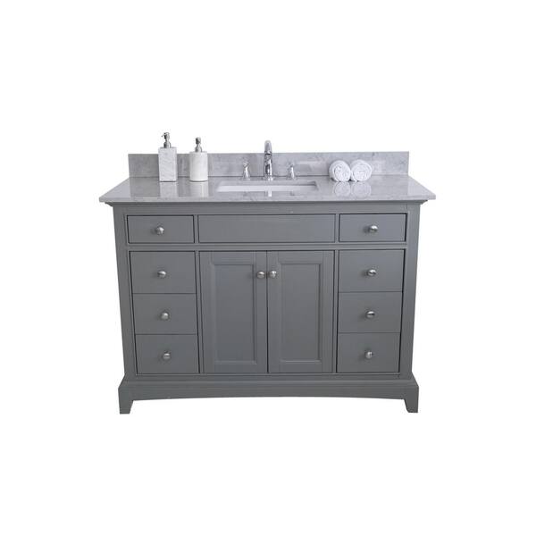 49 in. W x 22 in. D Engineered Stone Bathroom Vanity Top in Carrara Gray with Ceramic Single Sink and Backsplash