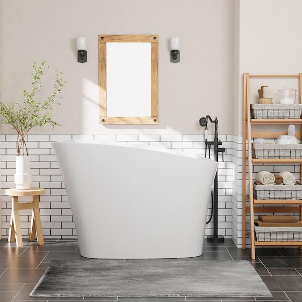 51.18 in. x 28.9 in. Stone Resin Flatbottom Solid Surface Non-Slip Freestanding Soaking Bathtub in Matt White