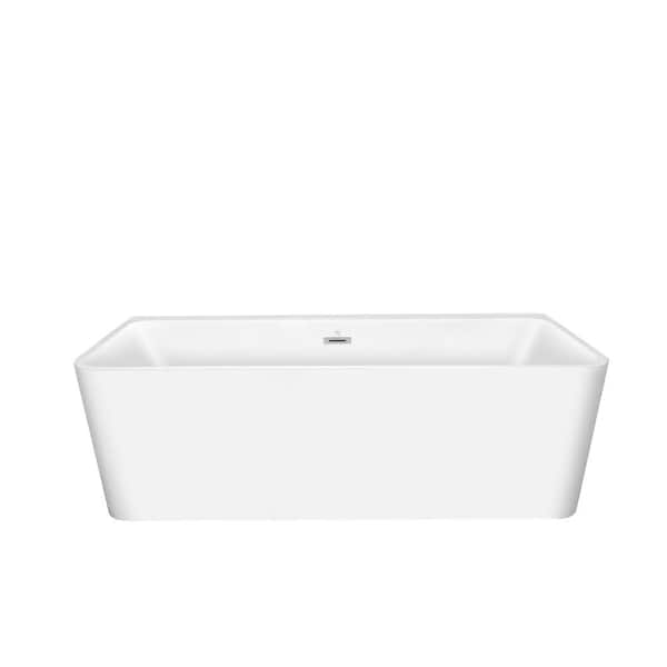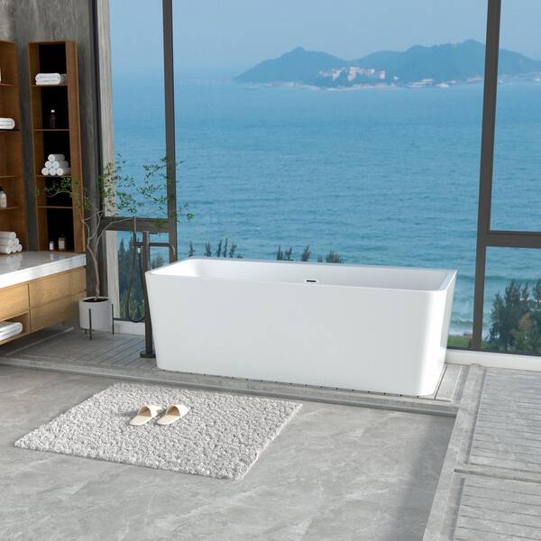 55 in. Acrylic Freestanding Flatbottom Double Ended Rectangular Soaking Bathtub in White with Brass Drain
