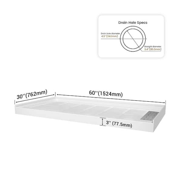 60 in. L x 30 in. W Single Threshold Alcove Shower Pan Base with Right Drain in White