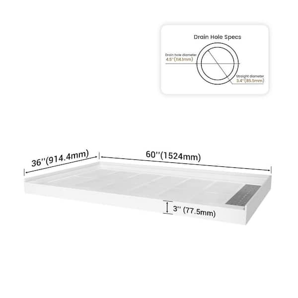 60 in. L x 36 in. W Single Threshold Alcove Shower Pan Base with Right Drain in White