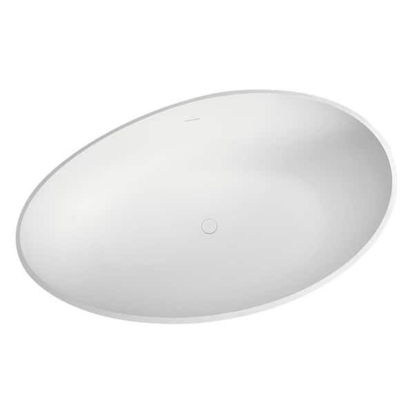 63 in. x 37.4 in. Shaped Solid Surface Freestanding Soaking Bathtub with Center Drain in Matter White