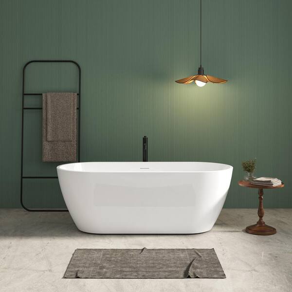66.9 in. x 29.5 in. Oval Acrylic Freestanding Soaking Bathtub with Pop-Up Drain and PVC Drainpipe in Glossy White