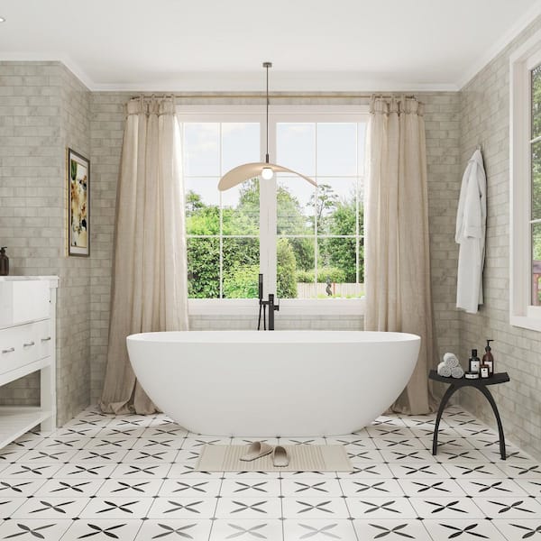 66.9 in. x 29.5 in. Solid Surface Egg Shape Freestanding Soaking Bathtub with Center Drain in Matte White