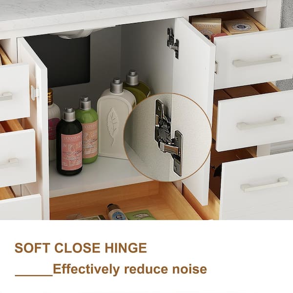 Solid Wood 60 in. W x 22 in. D x 39.3 in. H Double Sinks Bath Vanity in White with Carrara White Natural Marble Top