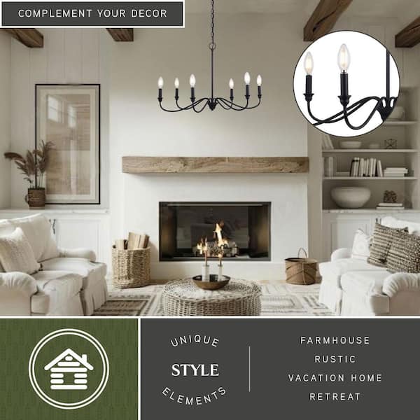 Annabelle 6-Light Matte Black Farmhouse Chandelier Candelabra