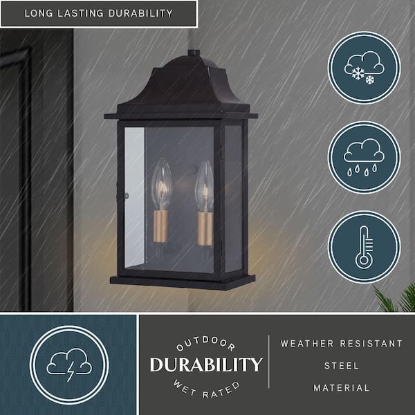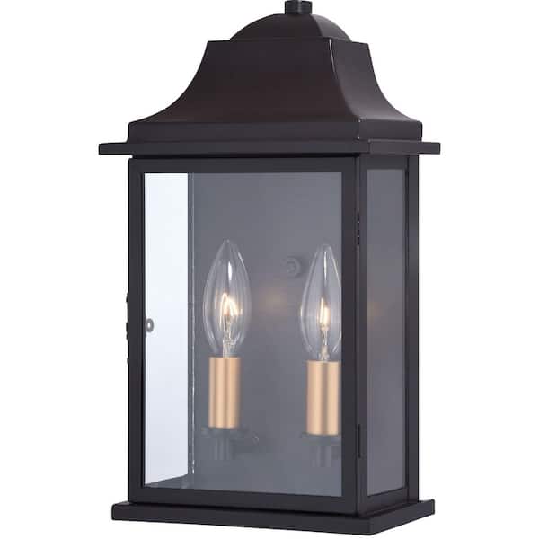 Bristol 2-Light Oil Burnished Bronze and Light Gold Outdoor Wall Sconce Lantern Clear Glass