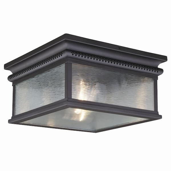 Cambridge Bronze Square Outdoor Flush Mount 2-Light Ceiling Light Clear Glass
