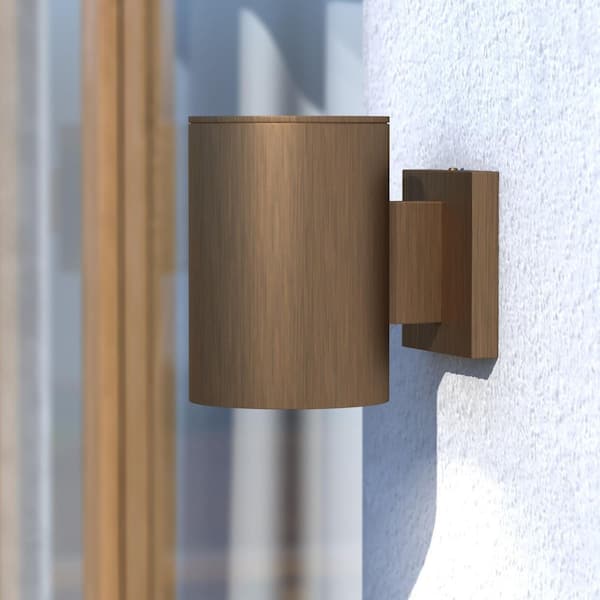 Chiasso 7.25 in. H Warm Brass Outdoor Mid Century Modern 1-Light Outdoor Cylinder Wall Sconce, Dark Sky