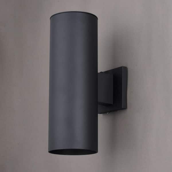 Chiasso Aluminum 2-Light Dusk to Dawn Black Contemporary Outdoor Cylinder Wall Light
