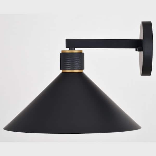 Dunbar 1-Light Matte Black and Gold Outdoor Contemporary Wall Sconce Metal Shade