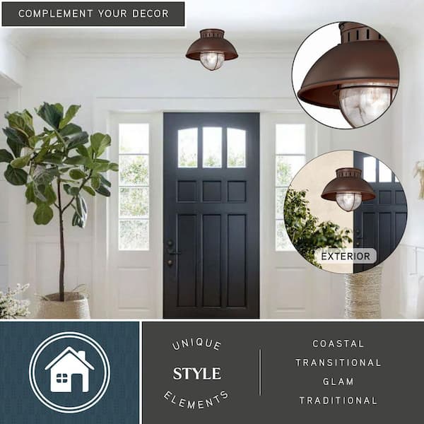 Harwich Bronze Coastal Barn Dome Outdoor Flush Mount 1-Light Ceiling Fixture Clear Glass