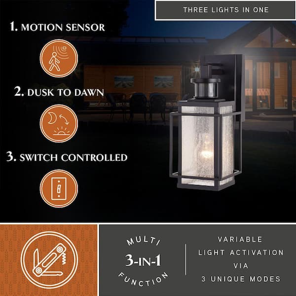 Hyde Park Metal Bronze Motion Sensor Dusk to Dawn Outdoor Wall Light Mission with Clear Glass