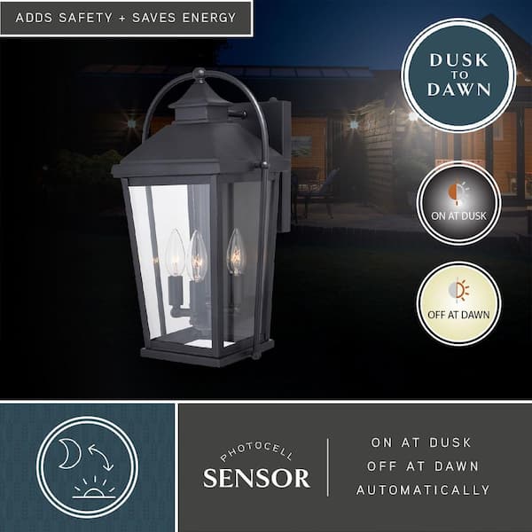 Lexington 3 Light Dusk to Dawn Black Outdoor Wall Lantern Clear Glass