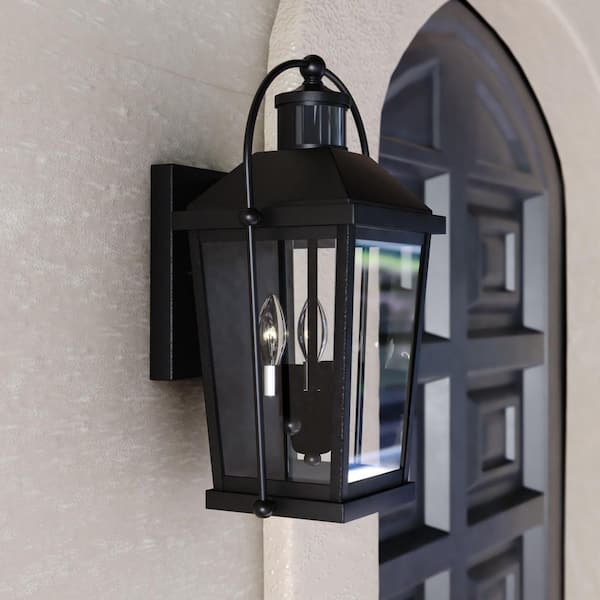 Lexington Aluminum Black Motion Sensor Dusk to Dawn Outdoor Wall Light Clear Glass