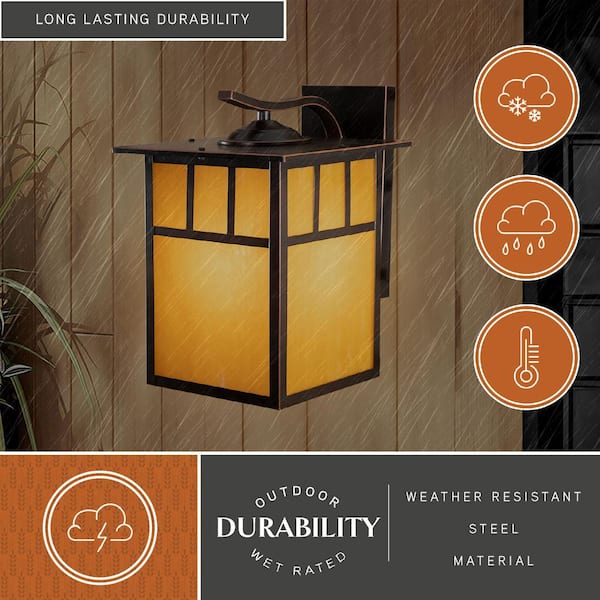 Mission 1 Light Bronze Rectangle Outdoor Wall Lantern Honey Glass
