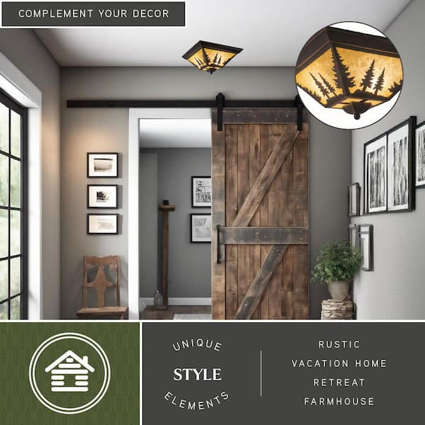 Yosemite Bronze Rustic Tree Square Indoor Outdoor Flush Mount 3-Light Ceiling Fixture