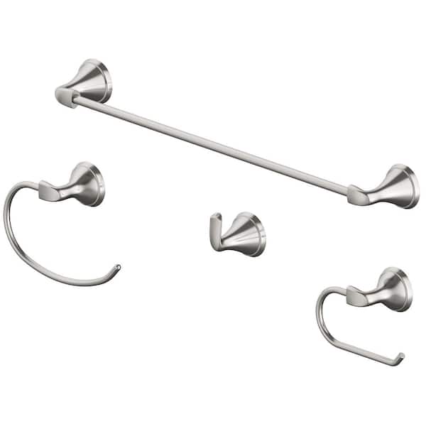 VAZIA 4-Piece Bath Hardware Set with 24 in . Towel Bar, Toilet Paper Holder, Robe Hook, and Towel Ring in Brushed Nickel
