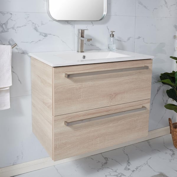 30 in.W X 18 in.D x 24 in.H Floating Bathroom Vanity in Light Gray with White Ceramic Top with Single White Sink