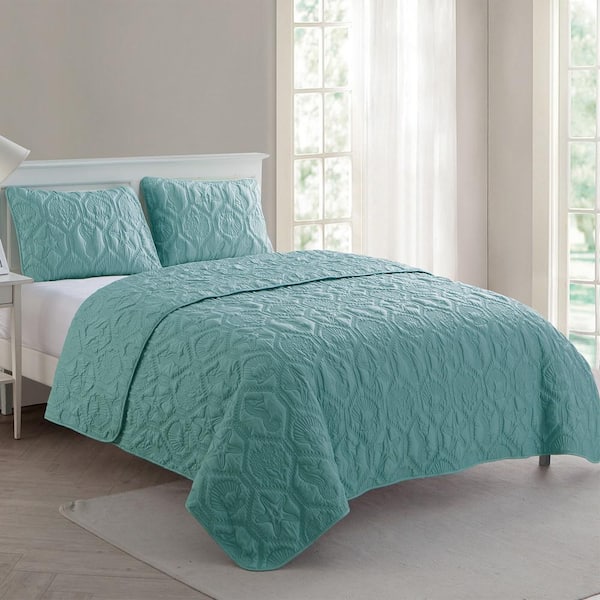 3-Piece Blue Shore Embossed Microfiber King Size Quilt Set