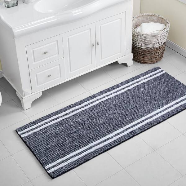 Hotel 24 in. x 60 in. Grey/White Stripe Polyester Rectangle Noodle Bath Runner
