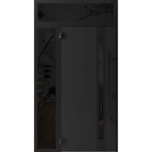 1033 52 in. x 96 in. Right-hand/Inswing 2 Sidelight Tinted Glass Teak Steel Prehung Front Door with Hardware