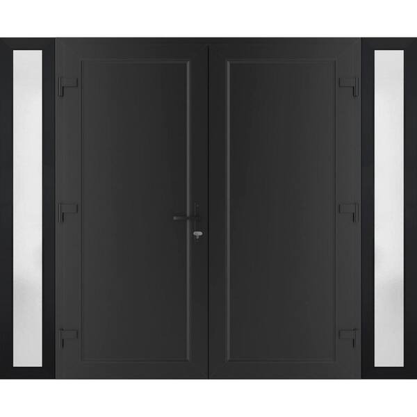 12+72+ 12 in. x 80 in. Right-hand/Inswing Frosted Glass Matte Black Steel Prehung Front Door with Hardware