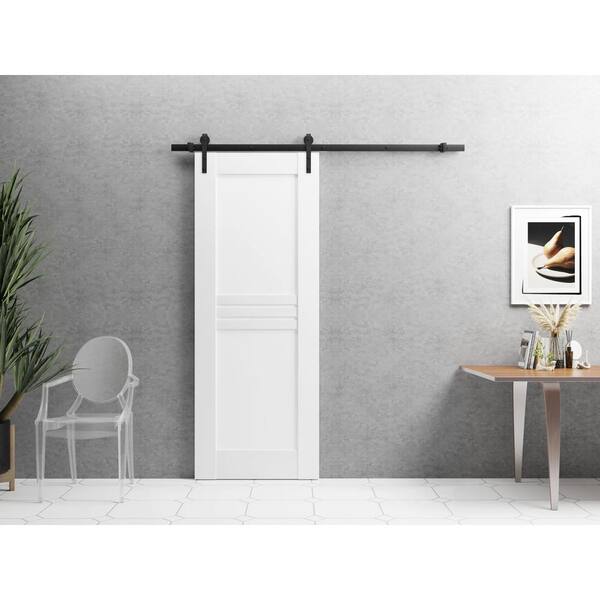 24 in. x 80 in. 1 Panel White Solid MDF Sliding Barn Door with Hardware Kit