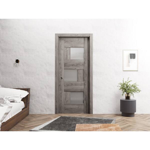 30 in. x 80 in. 1 Panel Nebraska Grey Finished MDF Sliding Door with Hardware