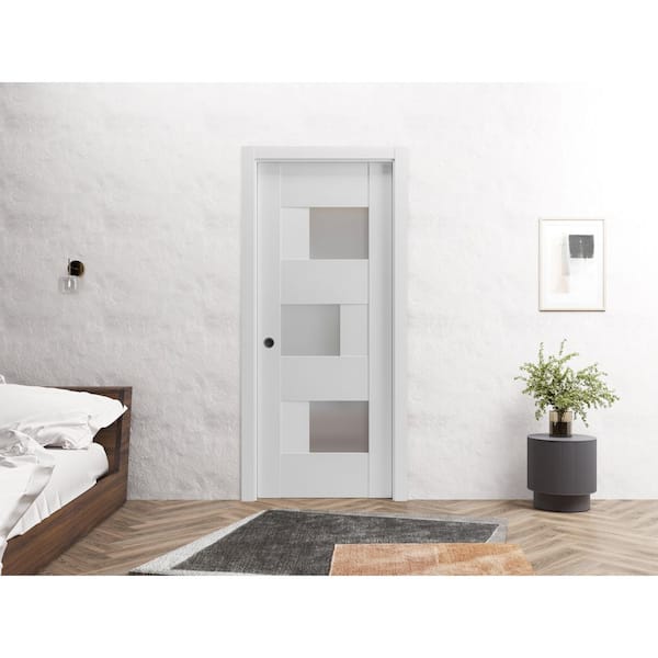 30 in. x 80 in. 1 Panel White Finished Solid MDF Sliding Door with Hardware