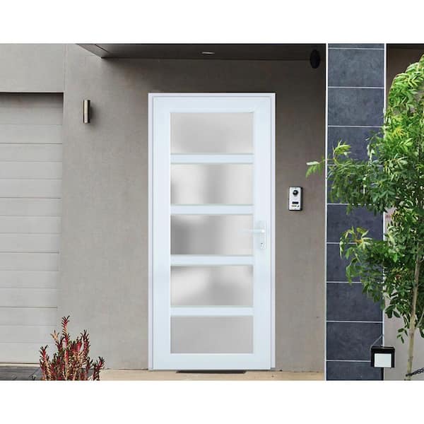 30 in. x 80 in. Left-Hand/Inswing Frosted Glass White Silk Steel Prehung Front Door with Hardware