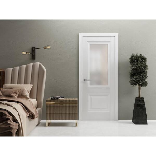 32 in. x 80 in. 1 Panel White Finished Solid Wood Sliding Door with Hardware