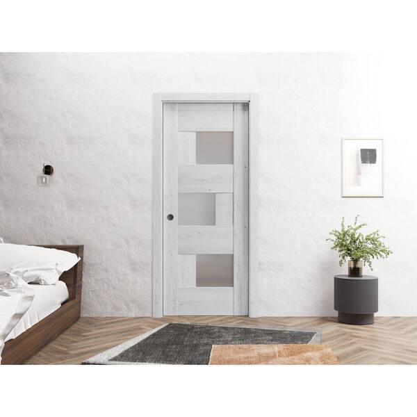 36 in. x 80 in. 1 Panel Nordic White Finished Solid MDF Sliding Door with Hardware