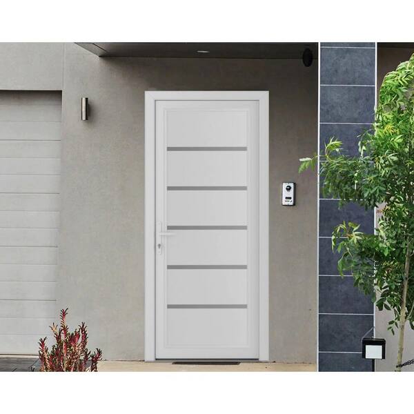 36 in. x 80 in. Right-hand/Inswing Frosted Glass White Silk Steel Prehung Front Door with Hardware