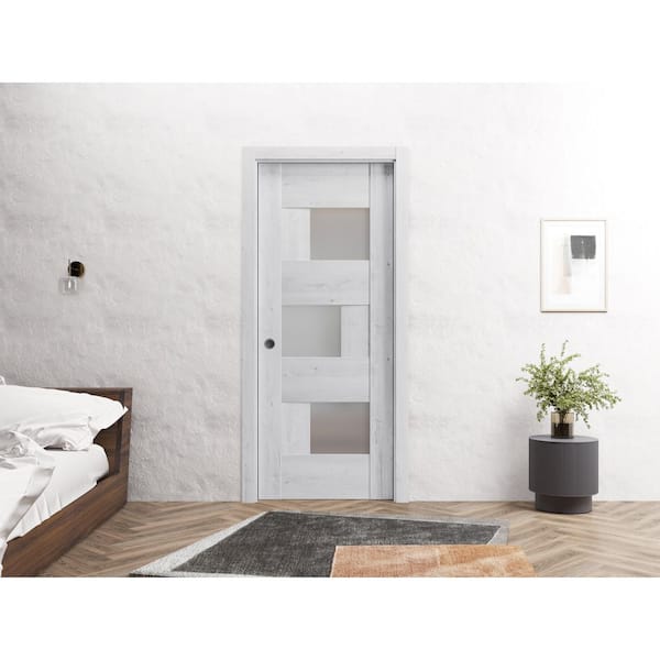 36 in. x 96 in. 1 Panel Nordic White Finished Solid MDF Sliding Door with Hardware