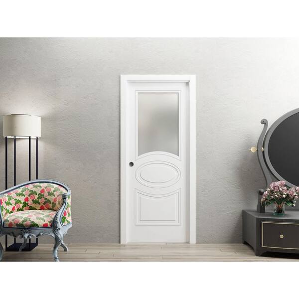42 in. x 80 in. 1 Panel Painted White Finished Solid MDF Sliding Door with Hardware
