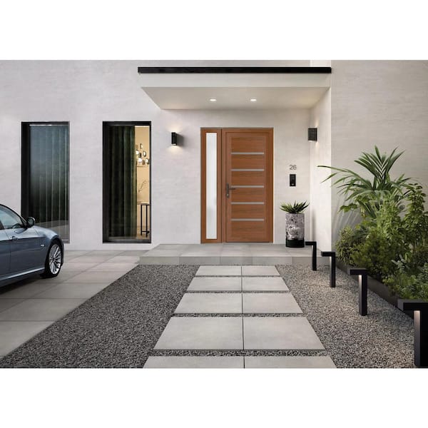 42 in. x 80 in. Right-hand/Inswing Frosted Glass Walnut Steel Prehung Front Door with Hardware