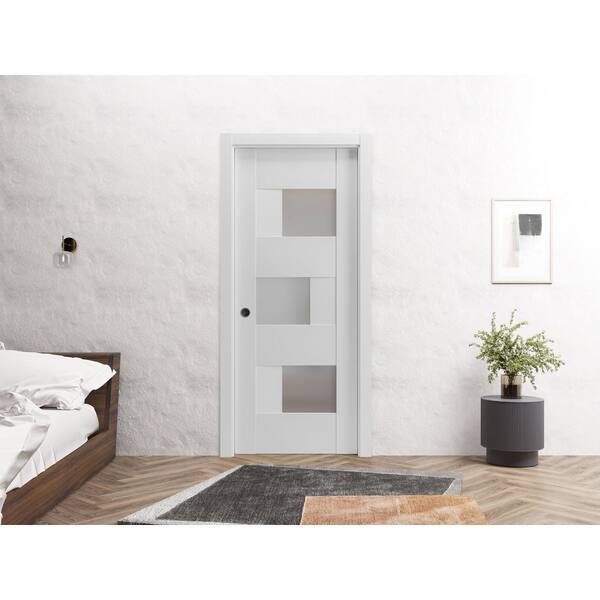 42 in. x 96 in. 1 Panel White Finished MDF Sliding Door with Hardware