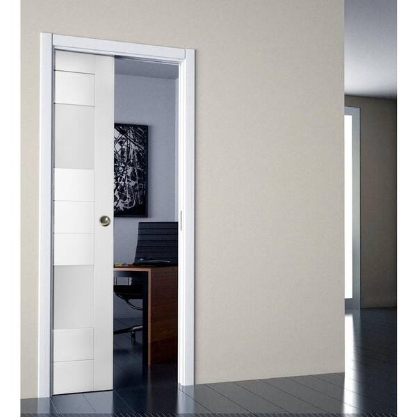 42 in. x 96 in. 1 Panel White Finished Solid MDF Sliding Door with Hardware