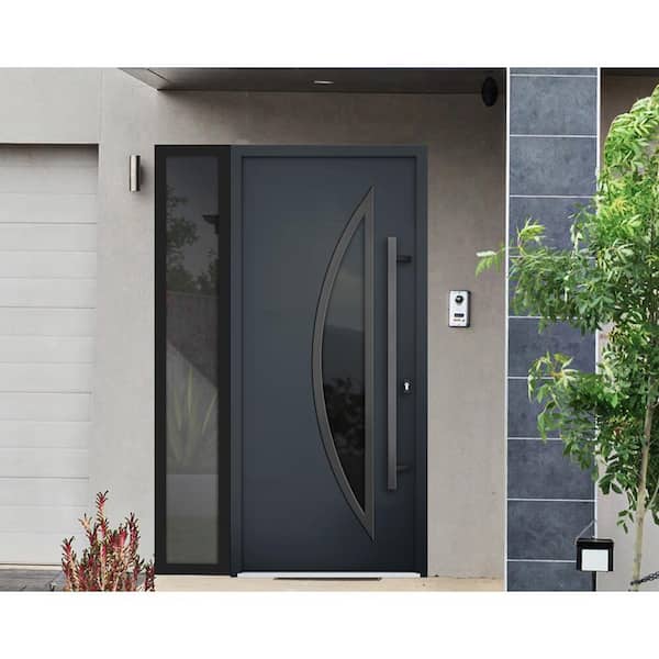 48 in. x 80 in. Left-hand/Inswing Tinted Glass Black Enamel Steel Prehung Front Door with Hardware