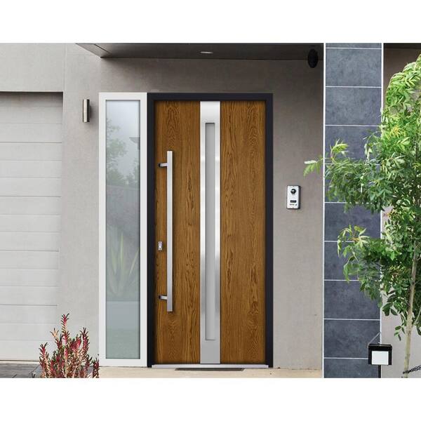 48 in. x 80 in. Right-Hand/Inswing Sidelight Frosted Glass Natural Oak Steel Prehung Front Door with Hardware