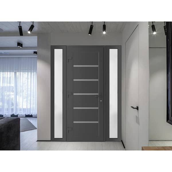 60 in. x 80 in. Right-hand/Inswing Frosted Glass Antracite Grey Steel Prehung Front Door with Hardware
