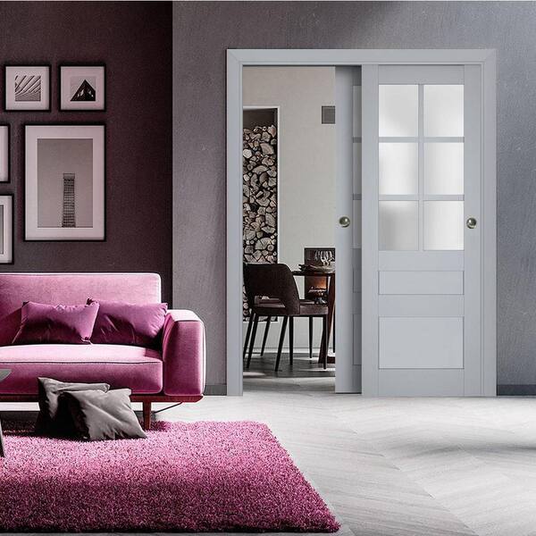 60 in. x 96 in. 2 Panel White Finished MDF Sliding Door with Hardware